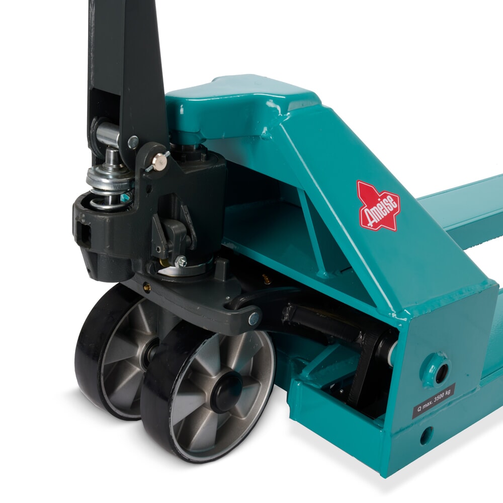Ręczny wózek paletowy Ameise® PTM 3.5, udźwig 3500 kg, długość wideł 1800 mm, poliuretan, podwójne rolki