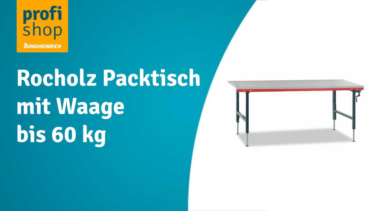 Stół do pakowania Rocholz z wagą do 60 kg, wys. x szer. x gł. 690–960 x 2000 x 920 mm